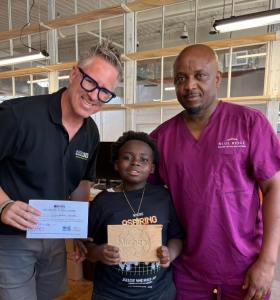 Grant funding helped OASIS Fine Art & Craft promote the arts through scholarships. Here a student shows off his 3D printed nameplate with JuiceWorks 3D Executive Director Andrei Dacko (left).